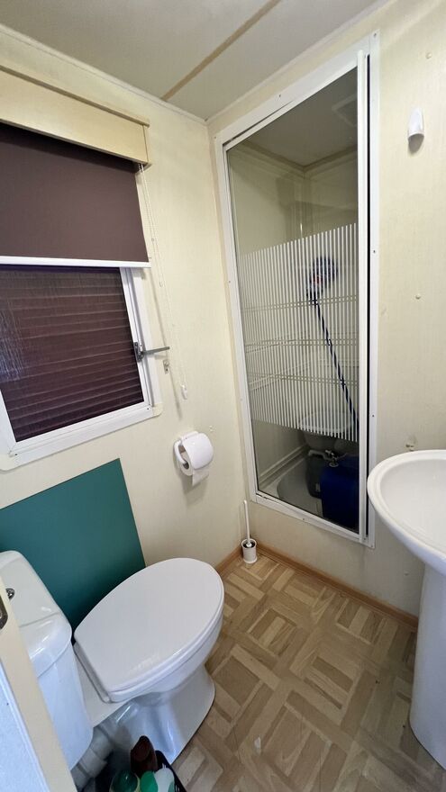 - Dodatkowa toaleta wolno stojąca (zbiornik o pojemności 40 litrów, rozkład przez wsypywany proszek biodegradowalny do toalet).